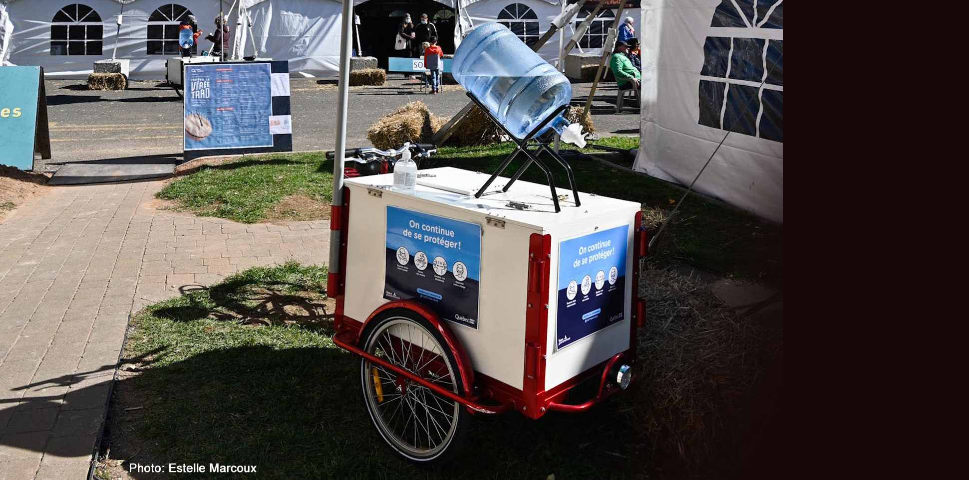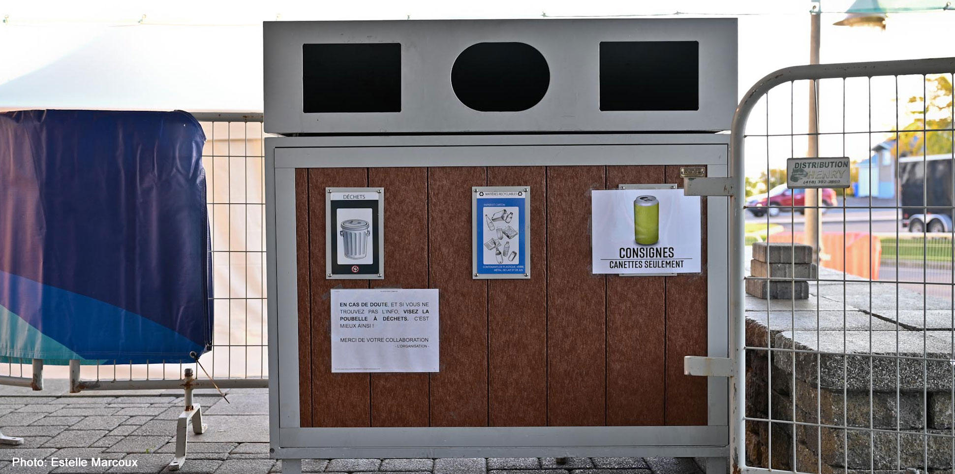 We have completely eliminated disposable containers (e.g., plastic water bottles and cups) in the festival bars and food concessions. These have been replaced by reusable cups (Écocups). We ask our exhibitors to apply the same approach at their stands.
